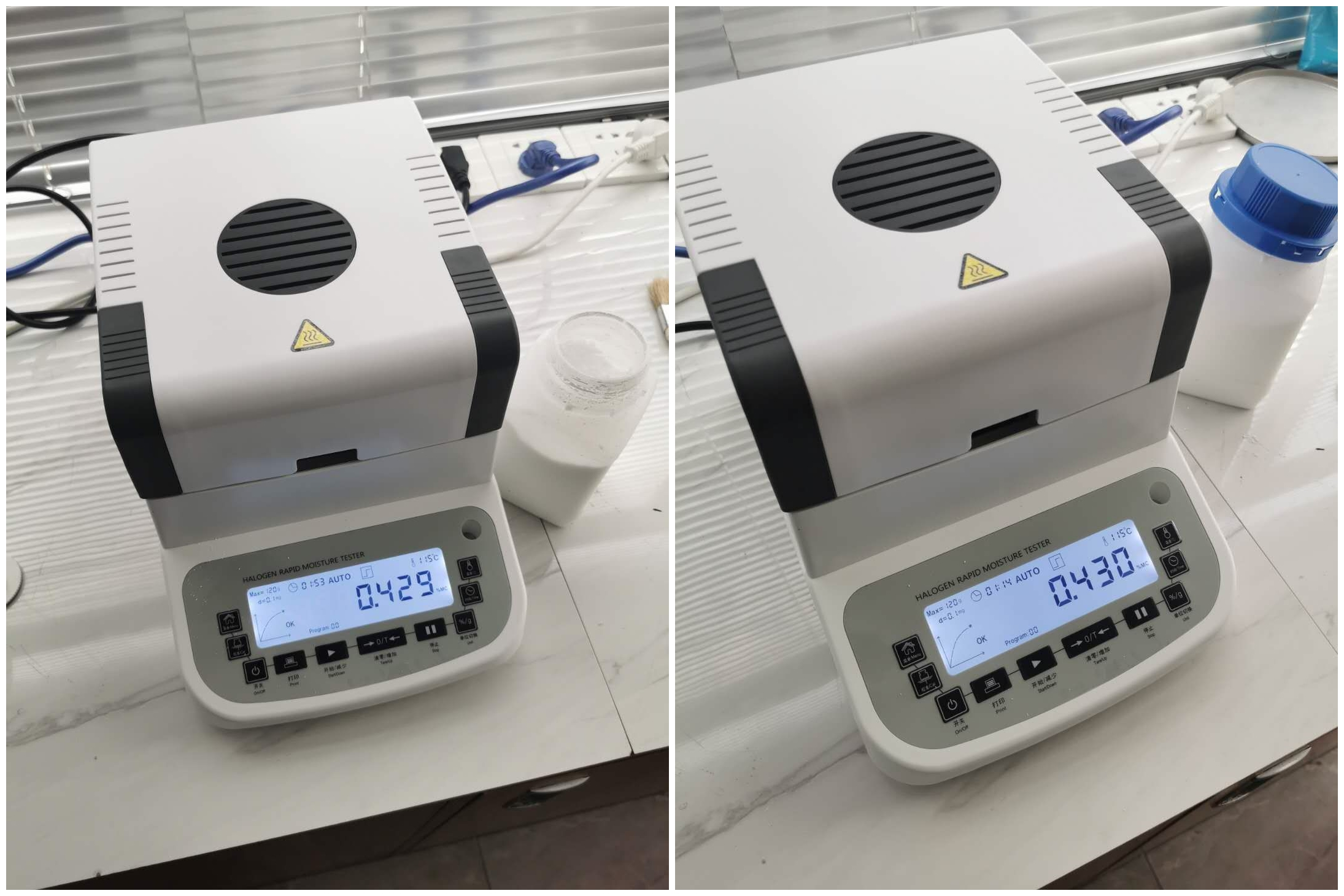 測試儀器:米德QL-100B(稱重精度0.0001g,水分解析0.001%)