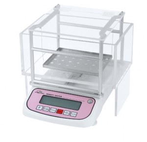 ②將樣品完全浸入水中,測水中重量,按M鍵記憶,直接顯示密度值。