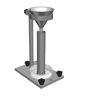 4?原理?  粉塵從漏斗口在一定高度自由落下充滿量筒時,測定松裝狀態時量筒內單位體積粉塵的質量,即粉塵堆積密度。